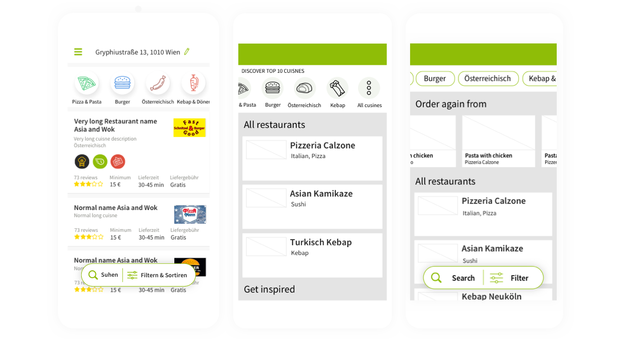 UX Design Study vol. 01 is all about the first user research we conducted, evaluation, and redesign of the restaurant list page on Mjam's iOS and Android app.